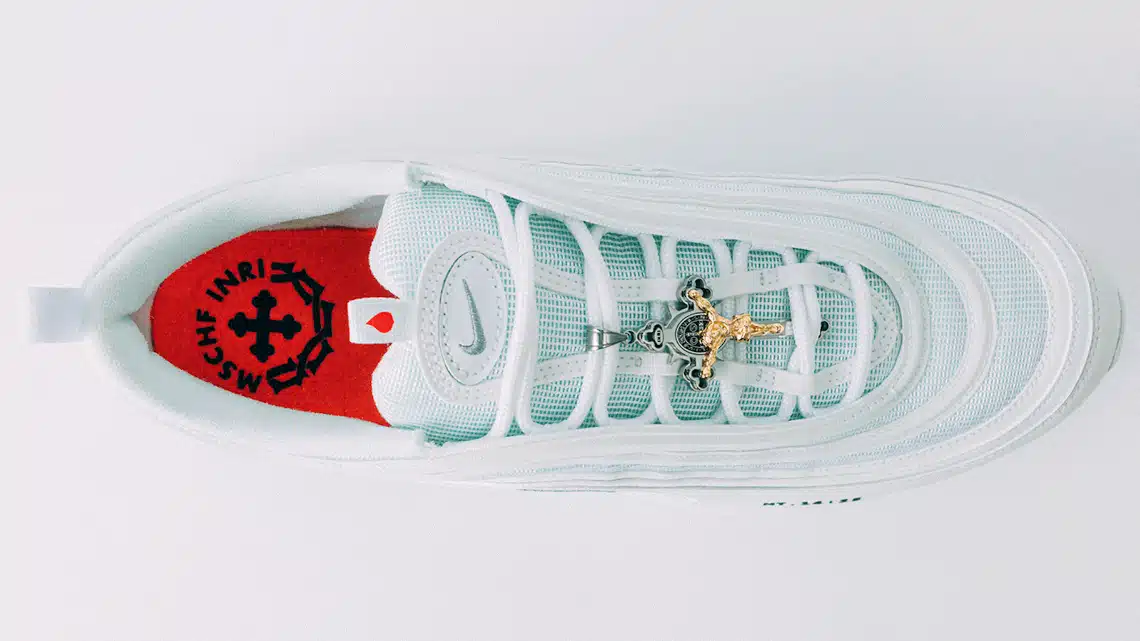 За да бъде всичко богоугодно, те носят и псалм от Евангелието на Матея. Цената на новите маратонки Air Max 97 е 3000 долара. Шегаджии се будалкат в мрежата, че в скоро време трябва да очакваме от Nike и маратонки с бранд Юда Искариотски.