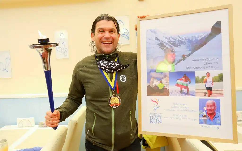 На тържествена церемония нашият алпинист бе удостоен с награда и звание „Почетен Факлоносец на мира“.