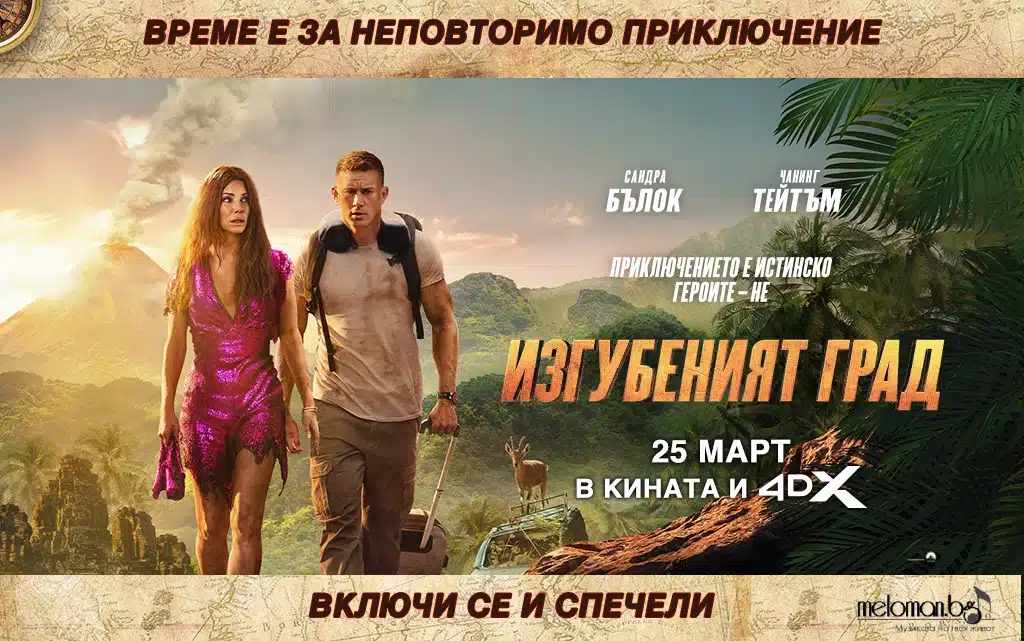 Този март се впускаме в търсене на „Изгубеният град“. Световните звезди Сандра Бълок, Чанинг Тейтъм, Брад Пит и Даниел Радклиф ще ни отведат на незабравимо филмово приключение, в края на което ще открием, че понякога фикцията се превръща в реалност, а най-голямото съкровище е там, където най-малко очакваме.