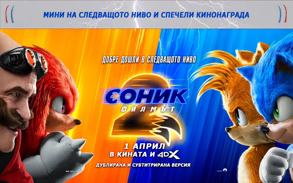 Този април, само в кината, ни очаква забавление на следващо ниво. След свръхзвуковия световен успех на „Соник: Филмът“, култовият син таралеж от популярната серия игри на SEGA се завръща за киноприключение от ново измерение със „Соник: Филмът 2“.
