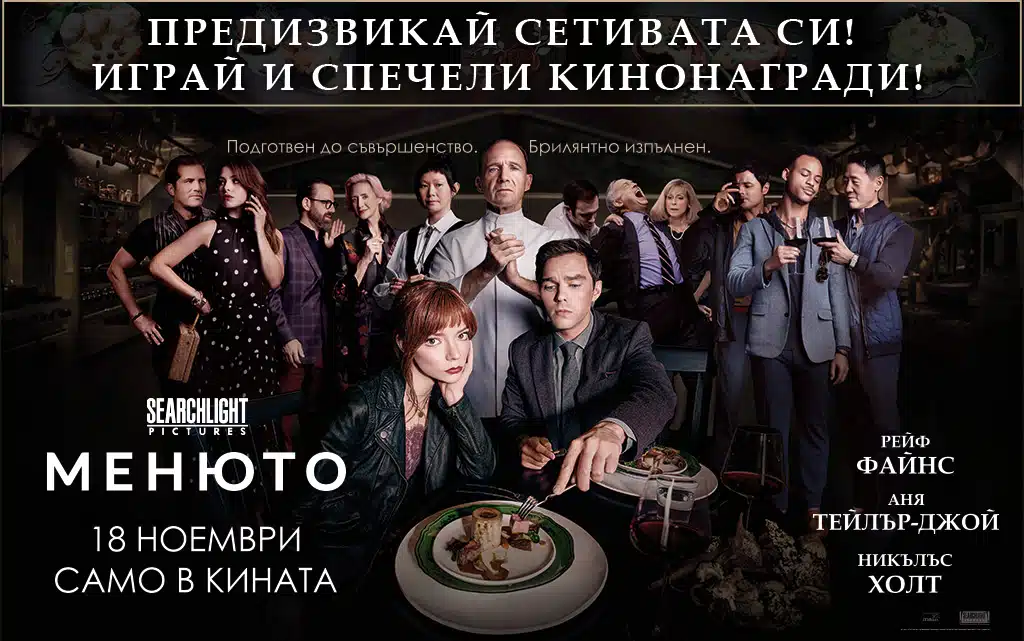 На 18 ноември ви сервираме киноугощение от ново измерение, което ще задоволи и най-фините киновкусове с перфектно подготвената и още повече – брилянтно изпълнената трилър мистерия „Менюто“.