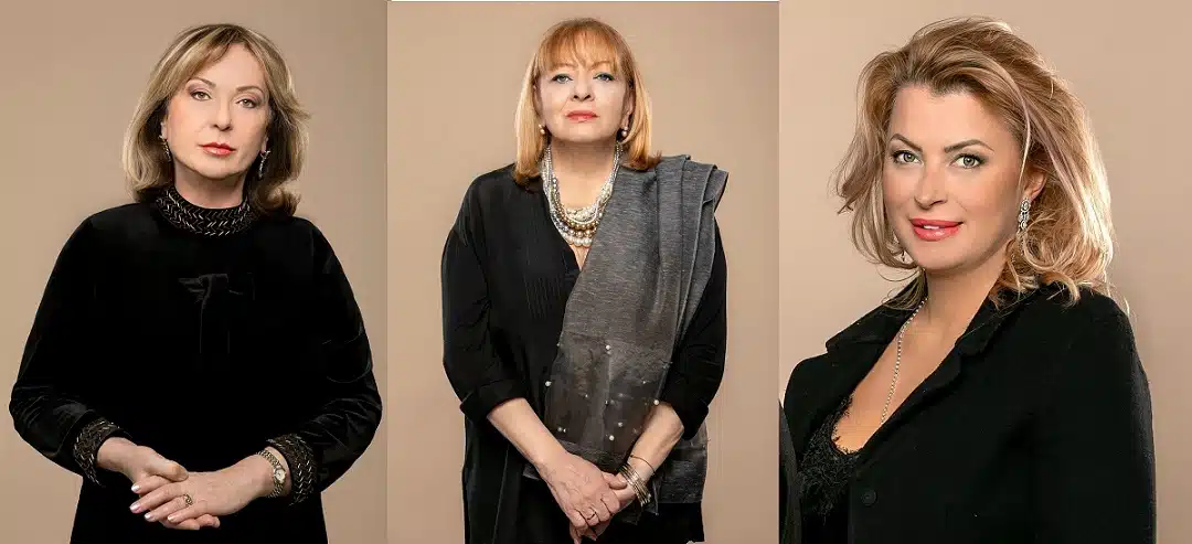 Богдана Карадочева – изпълнителка, чиито проникновени песни са докосвали душите на поколения българи, пяла със световни звезди като К. Френсиз, Адамо, Жилбер Беко, Клиф Ричард, Шарл Азнавур, Жозефин Бекер; и Нели Беширова, бизнесдама, която управлява многомилионна корпорация с интереси в енергетиката, но е и автор на две книги, член на Международния ПЕН-клуб.