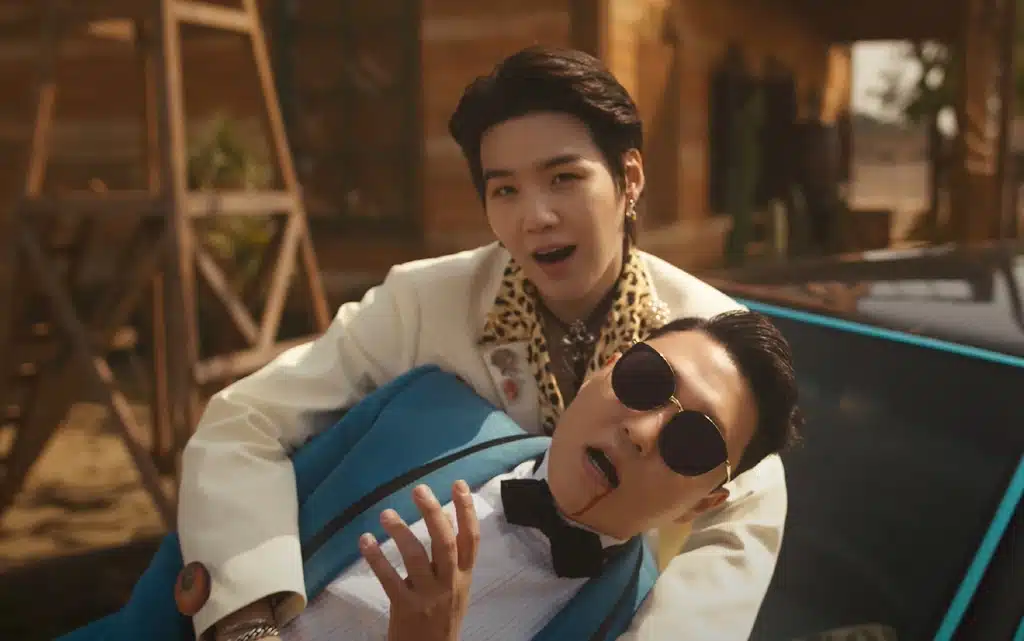 Във видеото към пилотния сингъл – „That That“, в който участва и Шуга от кей-поп групата BTS, обаче Сай е облечен с известния син костюм от клипа към “Gangnam Style“.
