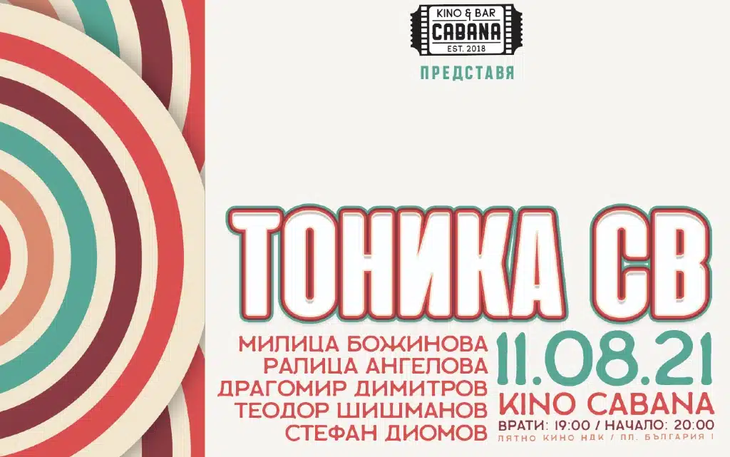 Неповторимата и обичана българската група Тоника СВ ще стъпи за първи път на сцената на Кино Кабана, на 11 август – следващата сряда.