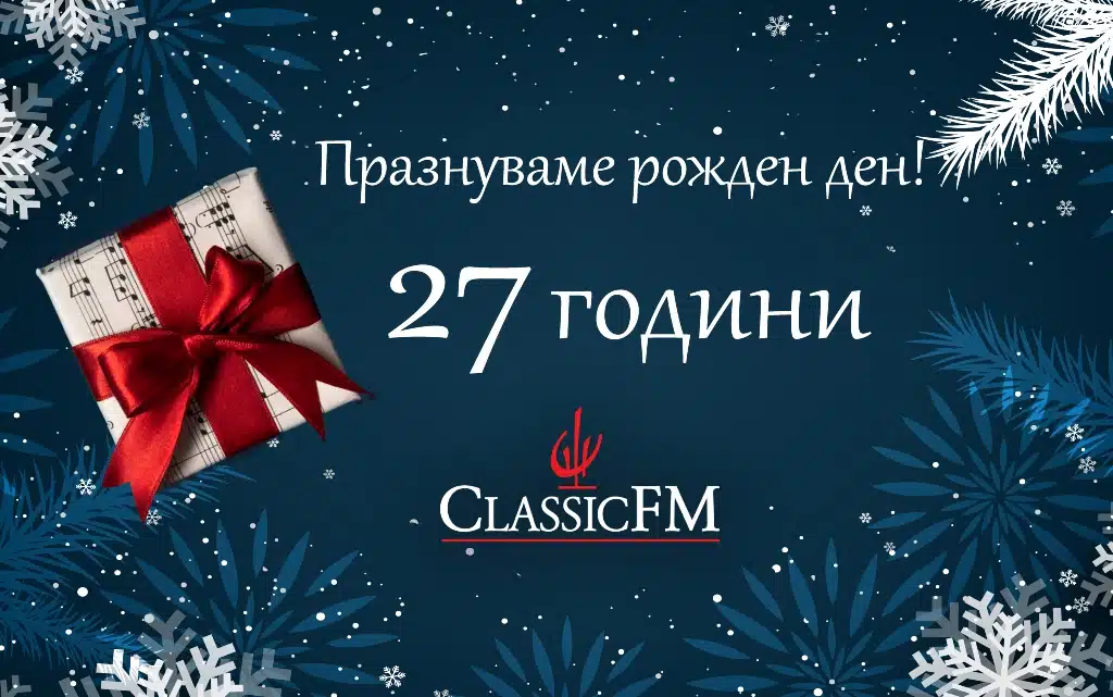 На 19 декември Classic FM радио празнува 27 години в българския радиоефир с празничен концерт. От 12 ч. в последната неделя преди Коледа единственото радио за класическа музика в България ще зарадва слушателите си със специална двучасова програма, включваща изявени професионалисти и млади таланти.