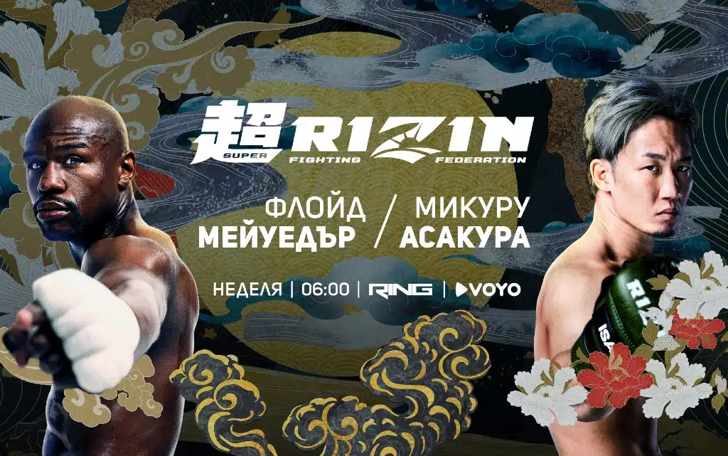 Тази неделя (25 септември) от 06:00 ч. зрителите на RING и абонатите на VOYO ще станат преки свидетели на епичния сблъсък между Флойд Мейуедър и Микуру Асакура.