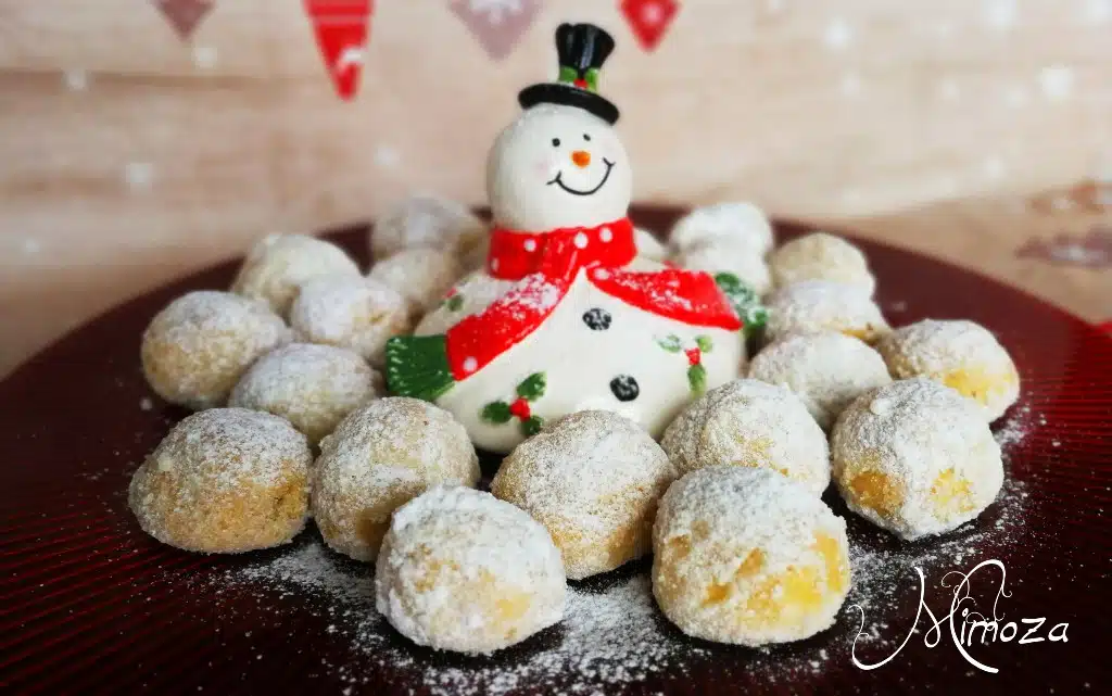 Нареждат се в застлана с хартия за печене тава и се пекат в предварително загрята на 180 градуса фурна, докато се зачервят. В зависимост от фурната и размера на сладките, времето може да е различно. На мен ми отне около 25 минути. Още горещи, се овалват в смес от пудра захар и ванилия.