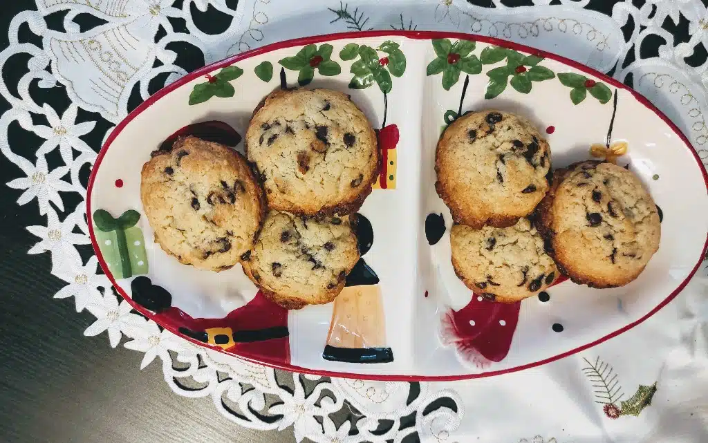 Оставяме сместа в хладилник за да стегне за около 30 минути. Поставяме хартия за печене в тавичка и оформяме сладките. Най-лесно това става с лъжица за сладолед. Тъй като сладките се разстилат, оставете достатъчно разстояние между тях.