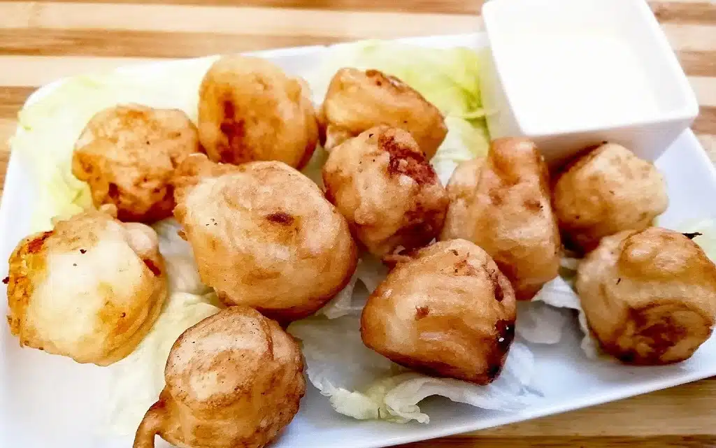 Белтъкът се разбива с миксер до бял сняг и се размесва с бирената смес и панировката е готова.