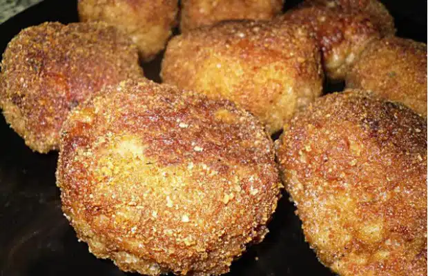 Готовите кюфтенца се овалват хубаво в галета и се изпържват в сгорещена мазнина до златисто.