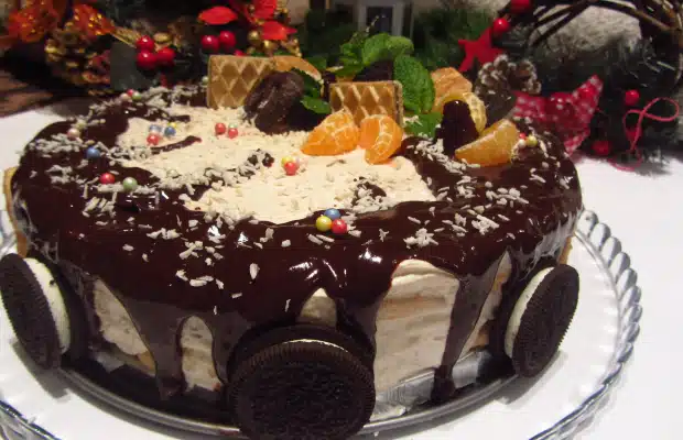 Може да залеете цялата торта с глазура или както пожелаха моите Коледни Джудженца – само по ръба.