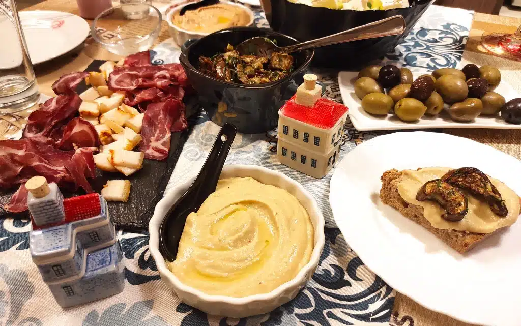 Пасираме нахута заедно с чесъна и зехтина. След като получим хомогенна смес добавяме сока от лимона и овкусяваме със сол и черен пипер.