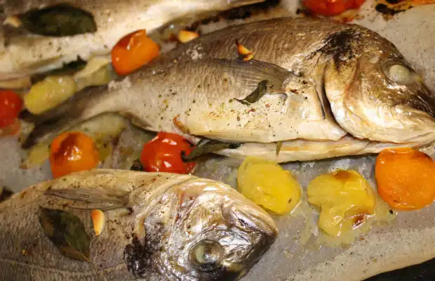 Те се карамелизират при печене и сладостта им кореспондира много добре с натуралния солен вкус на рибата.