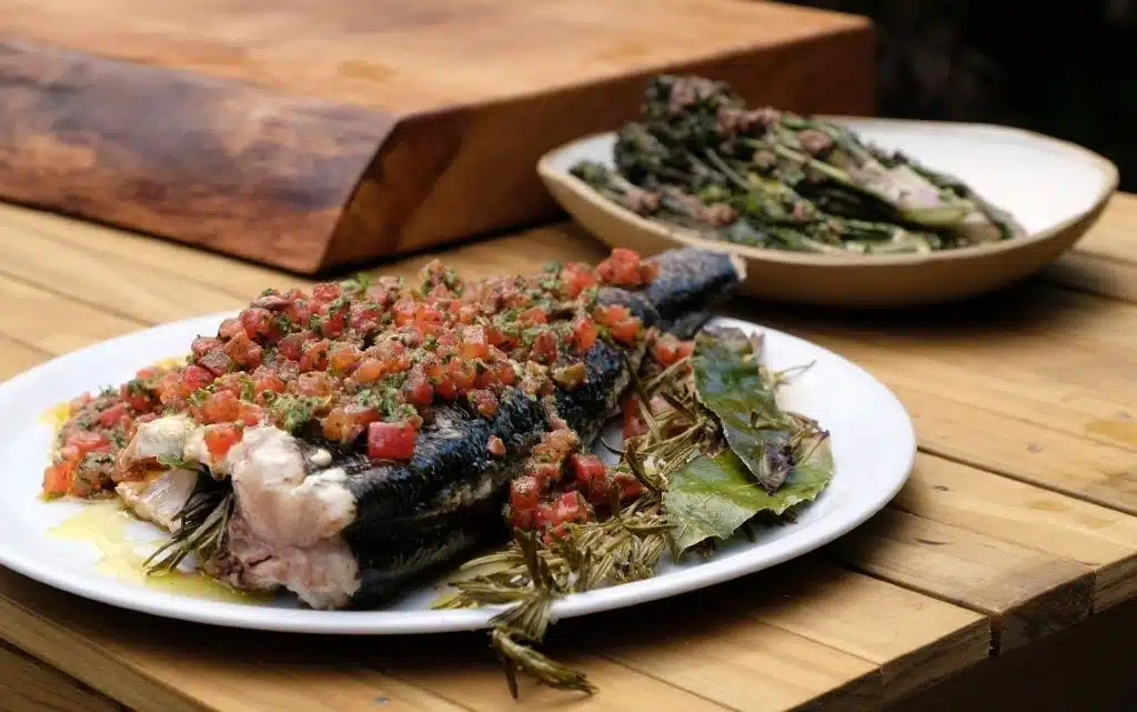 Поставете рибата върху умерено загрято барбекю. Печете 8-10 минути и обърнете. Печете още 10 ½ минути. Не се притеснявайте, че подправките ще изгорят. Те ще свършат работата си като овкусят рибата.