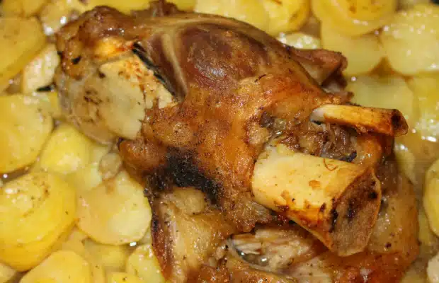 Навън времето си застудя и е време да се обърнем към по-сериозните ястия за трапезата. Днес „Вкусноладния“ се е погрижила с идея за точно такова – цяло свинско джоланче с картофи. Добър апетит! 🙂
