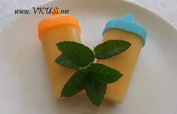 Разбивате млякото, меда и сметаната с пасатор. Прибавяте пъпеша и продължавате да пасирате, като по-желание можете да овкусите с листа от мента. Тя добавя лека екзотична, но пък много специфична нотка към вкуса. С готовата смес пълните формичките за сладолед, слагате цветните шапчици, прибирате във фризера за няколко часа.