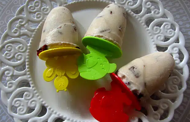 Замразяваме във фризера за поне 4 часа. За да извадите по-лесно сладоледчетата от формичките, поставете ги за кратко (5-6 секунди) в купа с топла вода.