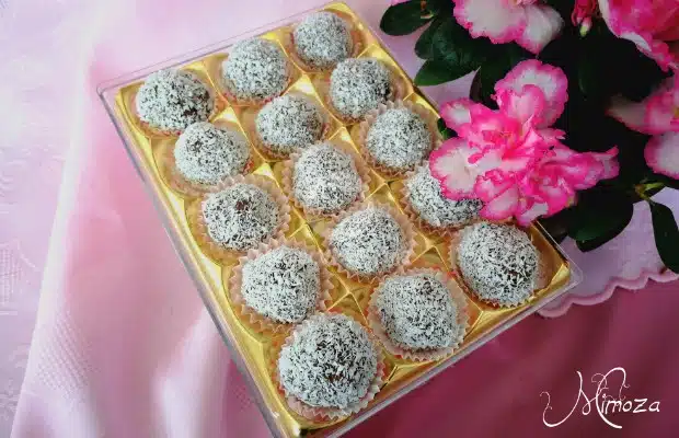 Освен нежния празник, аз имам и друга причина да почерпя – тази седмица рубриката „С дъх на Mimoza“ има годишнина! Вдъховена от двата специални повода, ми хрумнаха тези лесни и непретенциозни бонбонки. Направих ги с наличните вкъщи продукти.