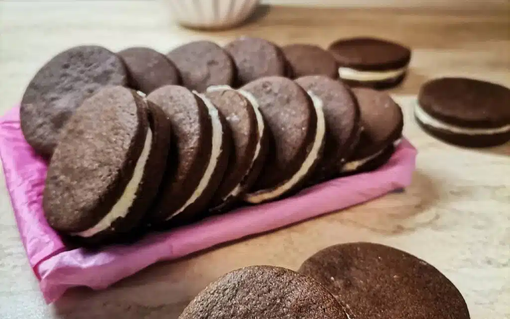 Домашни шоколадови бисквити с маслен крем и лимонови корички