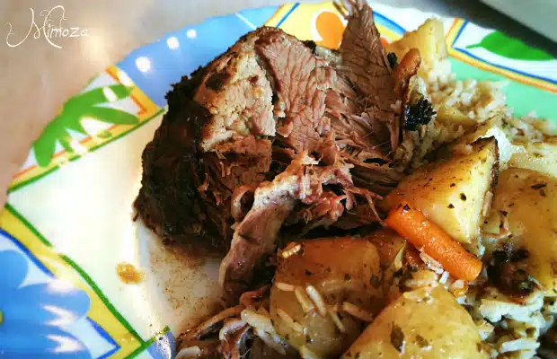 Месо, което пада само от кокала и в същото време е с хрупкава сочна коричка, гарнирано с изключително ароматни зеленчуци. Рецептата и изпълнението са на майка ми, снимките и дегустирането – от мен. 🙂