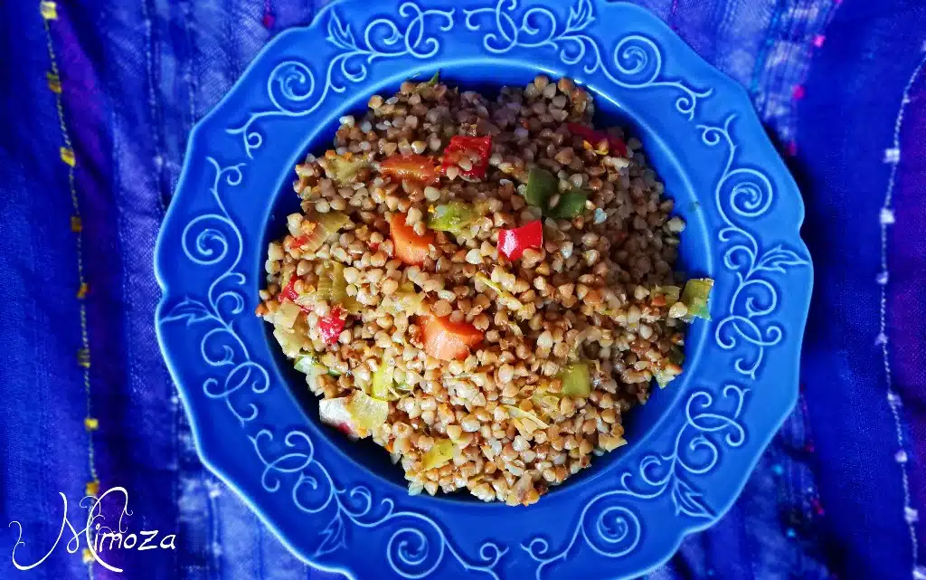Елдата се измива добре. Зеленчуците се почистват и нарязват на средно големи кубчета. Зехтинът се загрява и в него се задушават зеленчуците за десетина минути. Подправя се с червен и черен пипер, добавя се елдата. Залива се с 2-3 ч.ч. вода и се посолява на вкус. След като водата заври, котлона се намалява на средна степен и ястието се оставя да къкри около 30 минути.