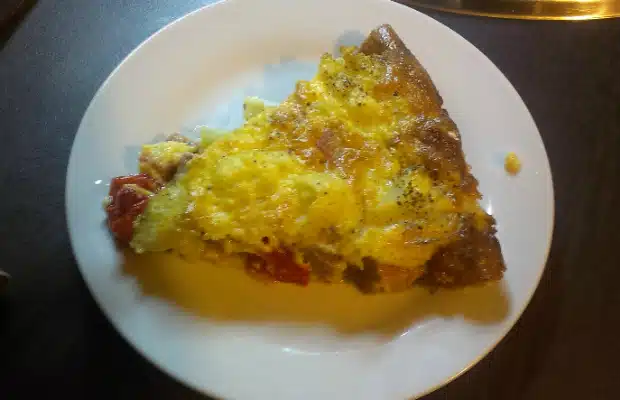 След това всичко се смесва, овкусява се със сол и черен пипер, и се залива с разбитите яйца, млякото, содата и брашното (добре разбъркани). Запича се във фурната само на горни реотани. Това е – бързо и апетитно.