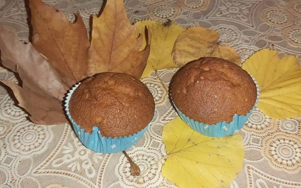 Готовата смес разпределяме във форми за мъфини, като не трябва да ги пълним догоре, а на 2/3 от формичката. Печем в предварително загрята фурна с вентилатор на 180 градуса. Готови са за около 20 минути, но проверяваме с клечка.