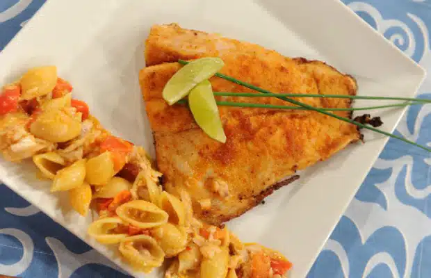 Подсушаваме филето от риба с кухненска хартия, овалваме го в панировката и го панираме в отделен тиган с малко зехтин. Сервираме филето от костур със соса от паста.