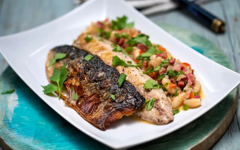 За старт на работната седмица сме ви приготвили лесна рецепта, с която много бързо можем да осигурим менюто за вечеря. Комбинираме филе от скумрия с боб. Резултатът е превъзходен. Опитайте! 🙂
