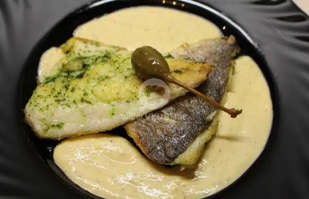 Овкусяваме с малко естрагон, сол и черен пипер на вкус. Поднасяме филетата риба върху още топлия сос и декорираме с каперси.