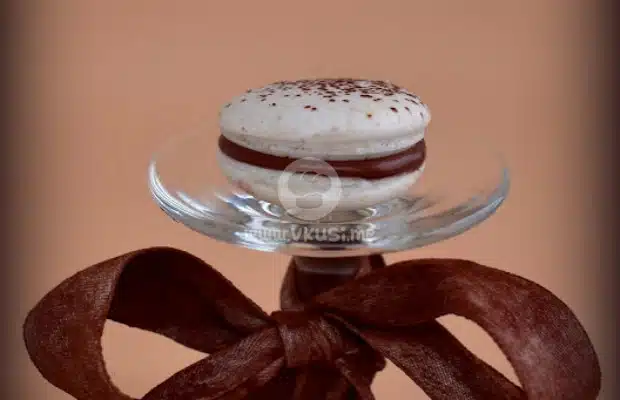Поръсете по малко какао на половината кръгчета. Печете макароните в загрята фурна по средата или отдолу за 15 минути на 150 градуса. Тук пак е от значение самата фурна. Не затваряйте плътно вратичката, за да излиза влагата. Готовите макарони трябва да образуват поличка след печене или крачета, които не бива да са с диаметър по-голям от самата основа. Оставете да се охладят напълно и отлепете внимателно от хартията.