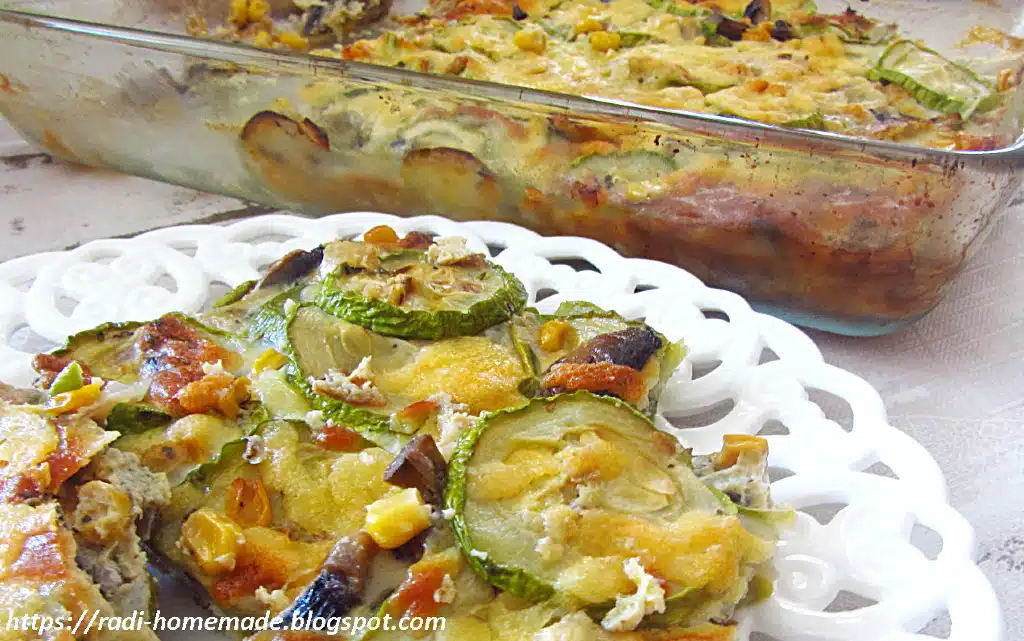 Фритата с тиквички, гъби и царевица на фурна