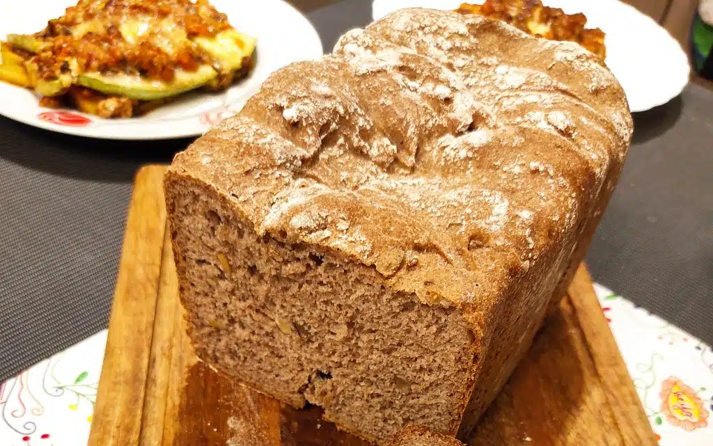 Печем на 160-170 градуса за около 40 минути. Хлябът е подходящ за направа и в хлебопекарна.