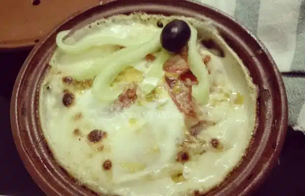 Запича се в предварително загрята фурна със затворен капак – около 15 минути. Накрая се добавя яйцето и се запича за още 5 минути, но без капак. Воала! Същите стъпки са и за втората порция. Бон апети!