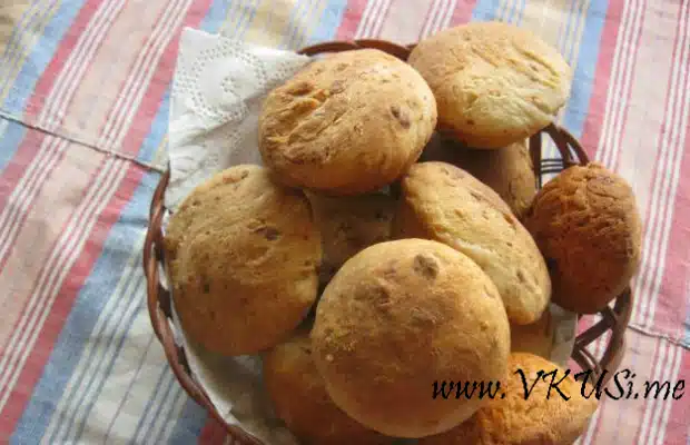Захарта и солта се разтварят във водата. Добавя се маята, брашното, зехтинът (или олиото) и настърганият кашкавал. Внимателно с миксер се разбърква в дълбока купа цялата смес. (Първоначално може да се разбърка с дървена лъжица и след това с миксера , до пълното омесване.) След това полученото тесто се прехвърля на набрашнена повърхност и се омесва добре, докато стане еластично. Връща с в купата и се оставя да втасва 30 минути на топло или в топла фурна, като предварително сте оформили тестото като хлебчета или като мъфини (във форма за мъфини). Пече се в загрята фурна около 20 минути.