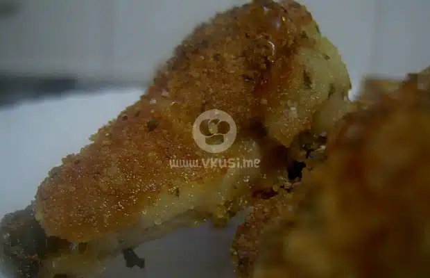След това крилцата се овалват в галета и се подреждат върху тава, застлана с хартия за печене.