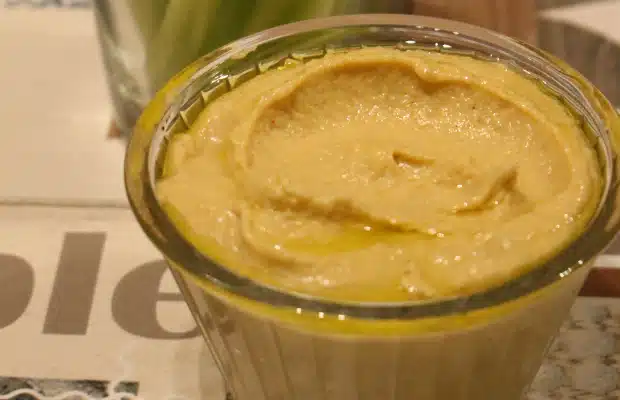 Днес представям моя вариант на една изключително вкусна арабска разядка с нахут – хумус. Ястието е извънредно популярно в целия Близък изток сред всички групи население. Близка до класическата рецепта, тази може да поднесете с домашно приготвен хляб, арабски питки, дори чипс или препечени филийки. Моя много любима комбинация за сервиране е с пръчици от краставици или моркови. Може да използвате както сух нахут, който да сварите вие, така и този от консерва.