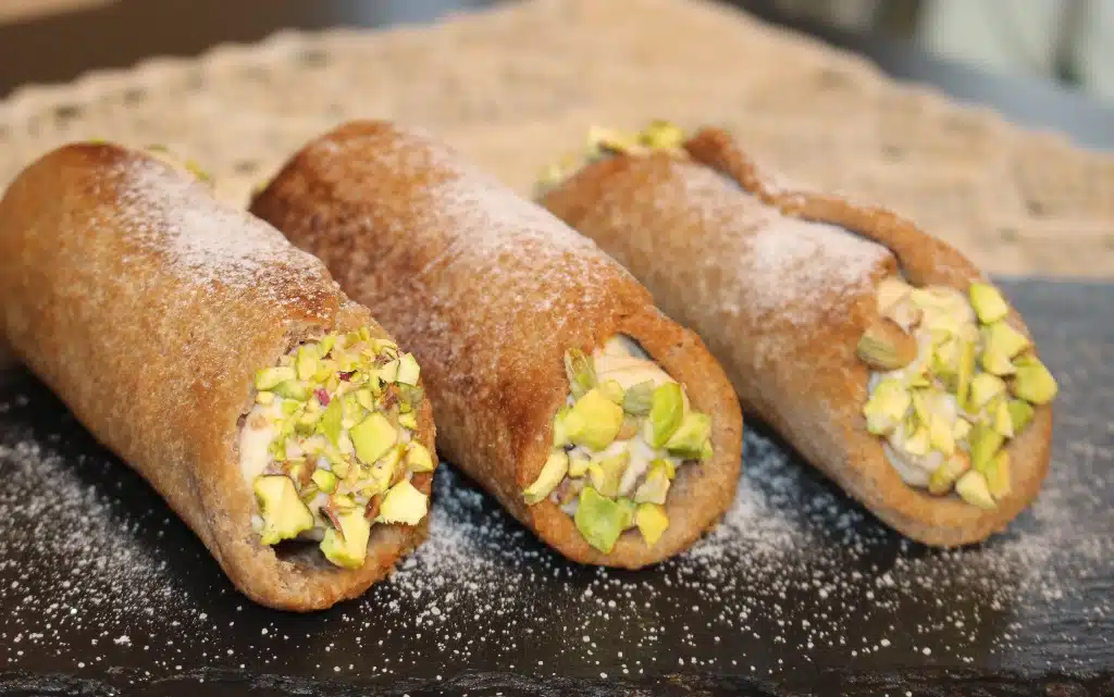 Каноли с крем от маскарпоне, шамфъстък и бадемово масло