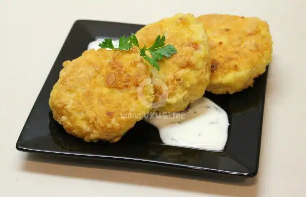 Прибавяме към тези продукти яйцето, брашното и подправките. Омесваме добре, за предпочитане с ръце. Оформяме кюфтета, които пържим в загрята мазнина, като ги потапяме първо в разбито яйце, а после овалваме добре в смес от галета и бяло брашно. Отцеждаме върху кухненска хартия, за да не са твърде мазни.