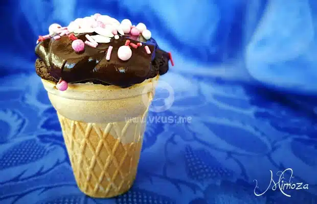 Яйцето се разбива със захарта. Прибавят се и останалите продукти. Сместа се разпределя във вафлени фунийки (или форми за мъфини), като се пълнят до 2/3 от обема.