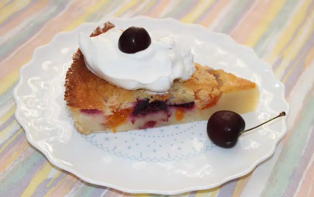 В сезона на хубавите плодове, защо да не си направим тази френска класика не само с любимите череши, а с добавка от свежи кайсии. С комплимент от „Вкусноландия“, добър апетит! 🙂