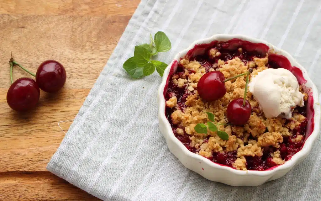 Сезонът на вишните е! Любим сезон и любим плод. Днес ви представям интересна идея за крамбъл с вишни – бърз, лесен и много, много вкусен! Да ви е сладко, приятели!