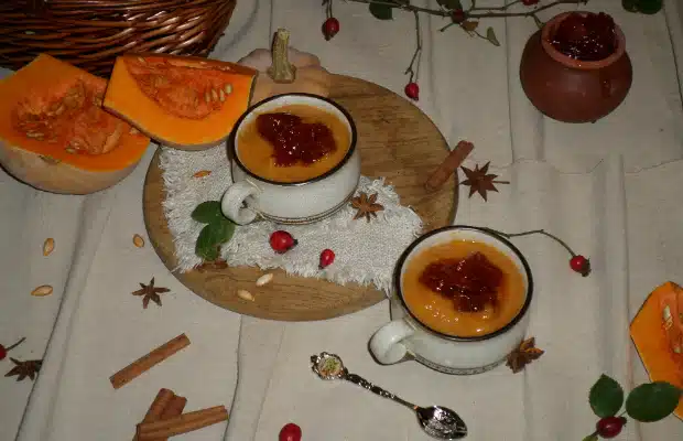 Преди да сме изпратили месец януари, ви предлагам да приготвите това лесно и много вкусно кремче. Със сигурност и на вас ви е останала някоя и друга тиква в мазето, която така и така не се решихте в какво да приложите. Възползвайте се от идеята ми са нещо сладко, бързо и полезно. Нека, като за последно, се насладим на зимните вкусове и аромати. 🙂