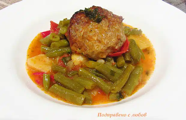 Подреждаме отгоре запържените кюфтенца. Поставяме капака и печем в загрята на 250 градуса за около час – час и половина.