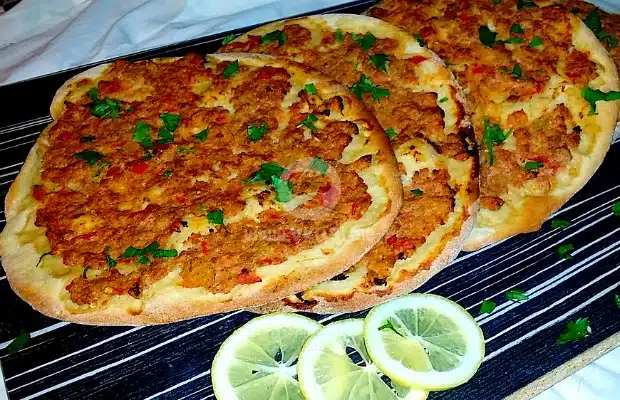 В рубриката „Вкусни изкушения“ днес искам да ви представя една рецепта от турската и арабската кухня за печиво от тесто с кайма и зеленчуци, наподобяващо пица. Лахмаджун съм опитвала в много варианти и да си призная доста търсих, докато попадна на рецептата, която се доближава до вкуса, който харесвам. Тестото е домашно приготвено, тънко разточено с добавки, които ще погъделичкат вкусовите ви рецептори. Ако сте почитатели на пицата, непременно трябва да опитате и този вариант.