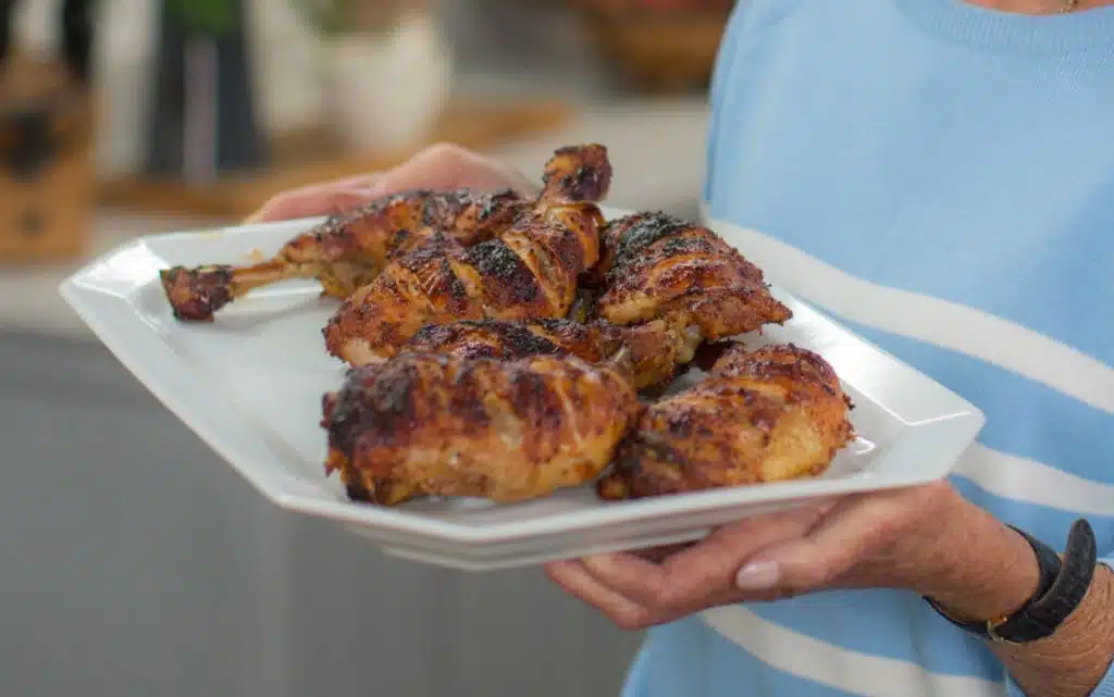 Сервирайте лепкавите пилешки бутчета със зелена салата.