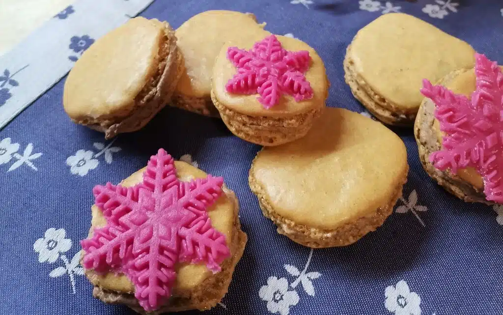 Върху хартия за печене правим четен брой кръгчета от сместа. Потупваме няколко пъти тавата, за да излезе въздуха от тях и оставяме 30 минути да починат. С пръст проверяваме дали се е получила нещо като твърда „шапка“ и слагаме да се пекат в загрята на 150 градуса фурна за 13 минути. След 3 и след 10 минути фурната се отваря, за да излезе парата и се затваря. Изчакваме да изстинат преди да ги намажем с крем.