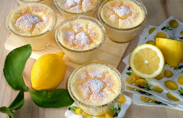 Разбийте жълтъците на яйцата със захарта и прибавете настърганата кора от лимона и сокът му. Налейте млякото и поръсете брашното отгоре. Разбъркайте добре сместа. Разбийте белтъците в отделна купа на сняг със солта. Добавете ги към сместа със жълтъците и разбъркайте всичко внимателно с шпатула. Не прекалявайте.