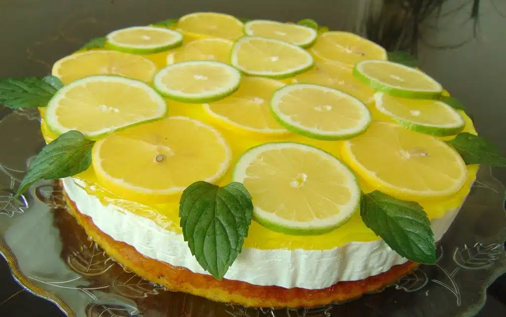 Лимоновата смес приготвям накрая, като тя се излива върху крема. Трябва да се внимава да не изтече отстрани, затова формата трябва да е стегната добре около десерта. Тук най-трудното е да се изчака да се стегне преди да се хапва. 🙂