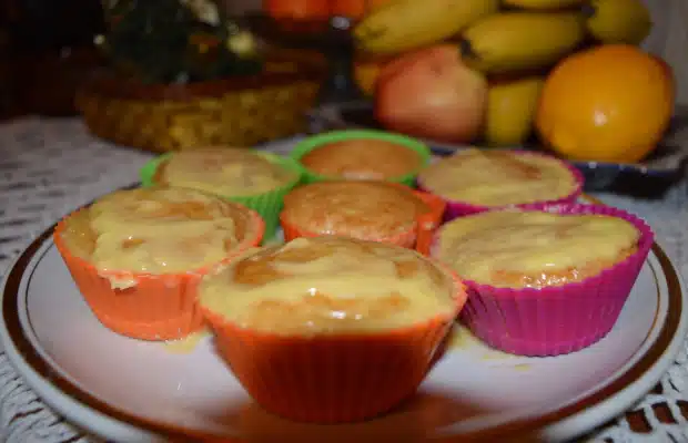 Напълнете хартиените форми и изпечете във фурна на 180 градуса за около 15-20 минути. Оставете ги да изстинат. Разбийте размекнатото масло, пудрата захар и ванилията. Украсете мъфините с масления крем.